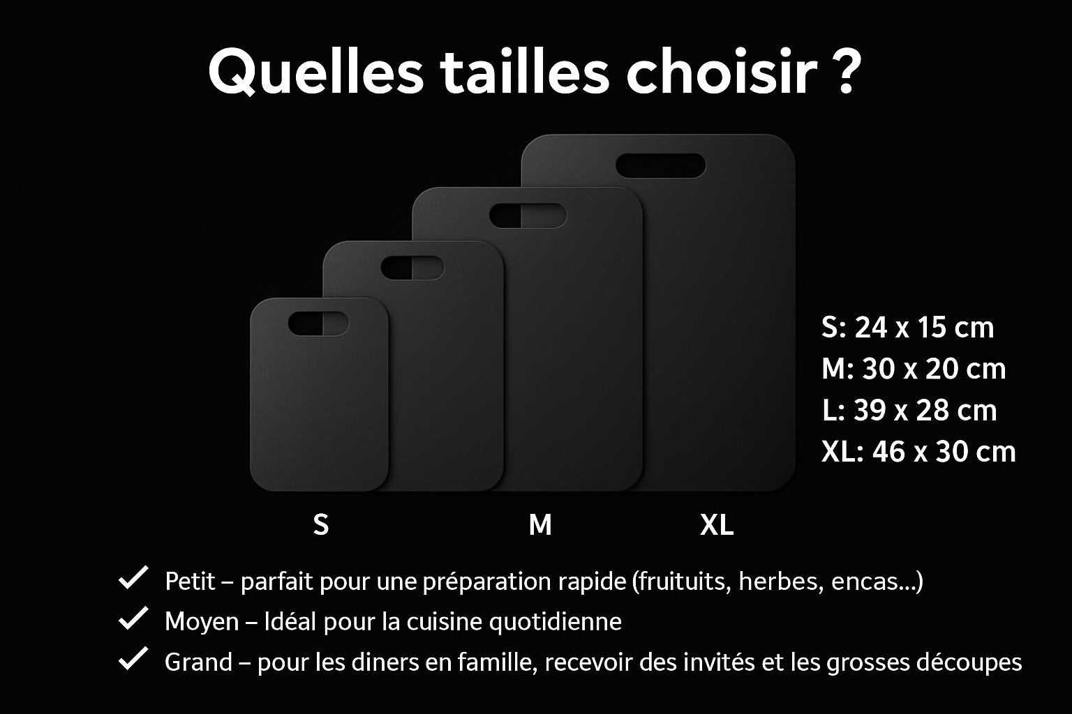 J'aime beaucoup cette planche à découper, tant pour sa forme que pour sa taille, car elle ne prend pas beaucoup de place. Elle est donc parfaite. Je la recommande à tous. Excellente planche à découper.