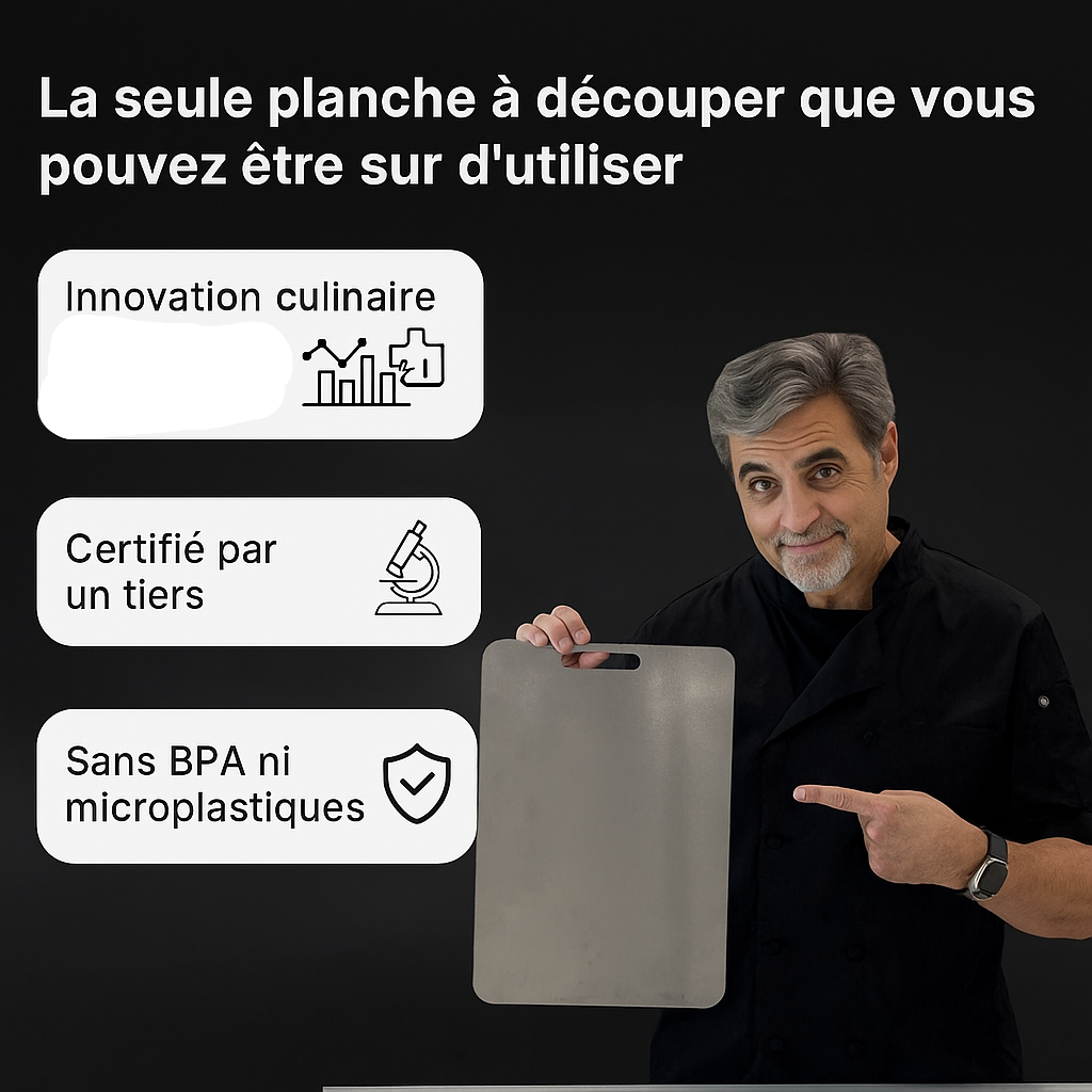 Oui ! Notre planche à découper 100 % titane pur est certifiée LFGB, non toxique, non poreuse et antibactérienne, ce qui la rend plus sûre que le plastique ou le bois pour le contact direct avec les aliments.